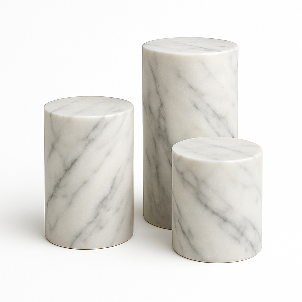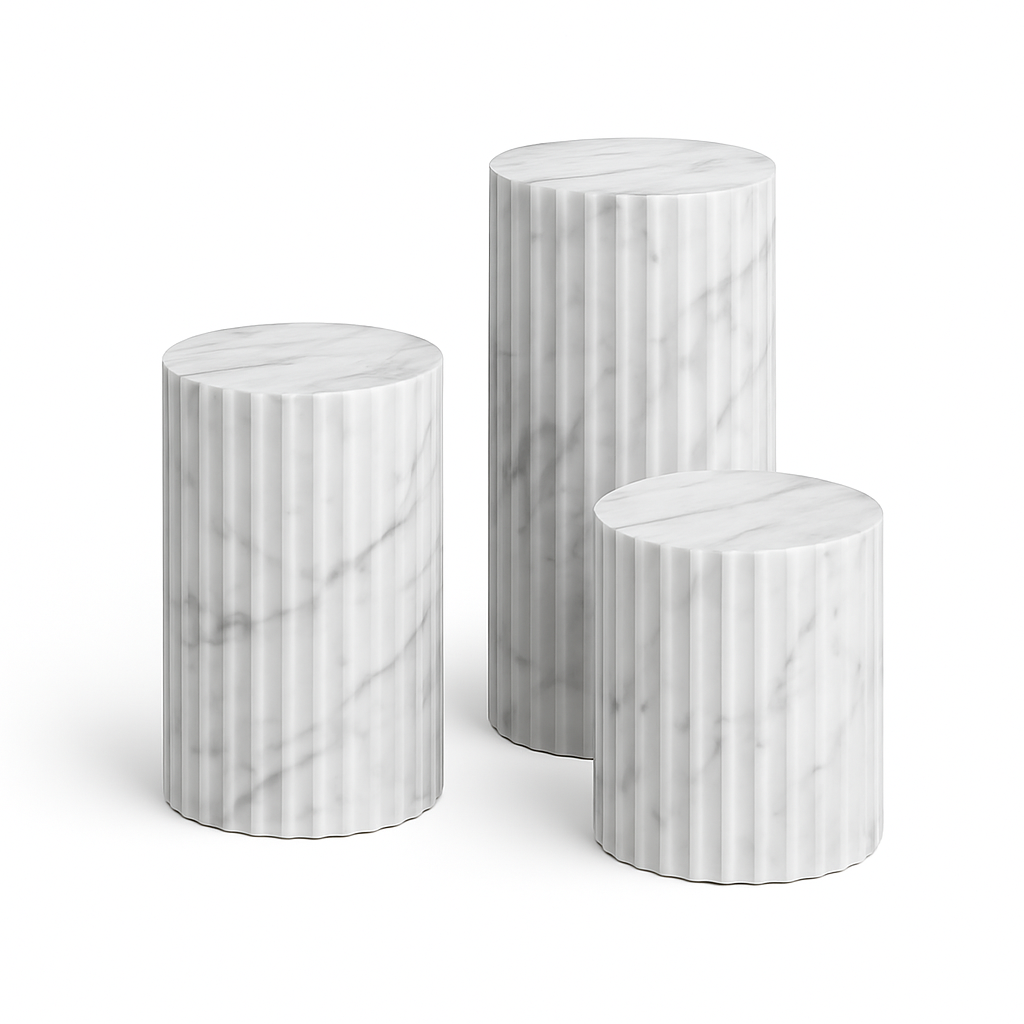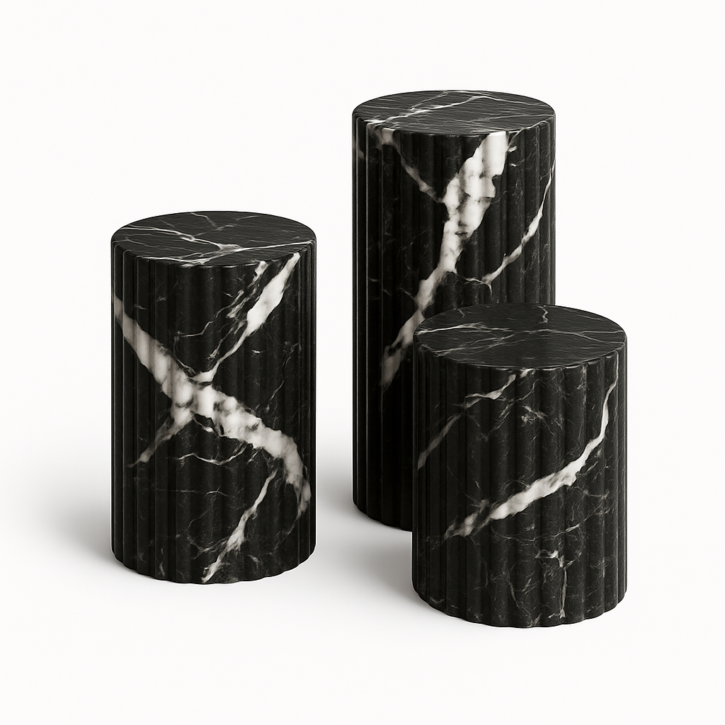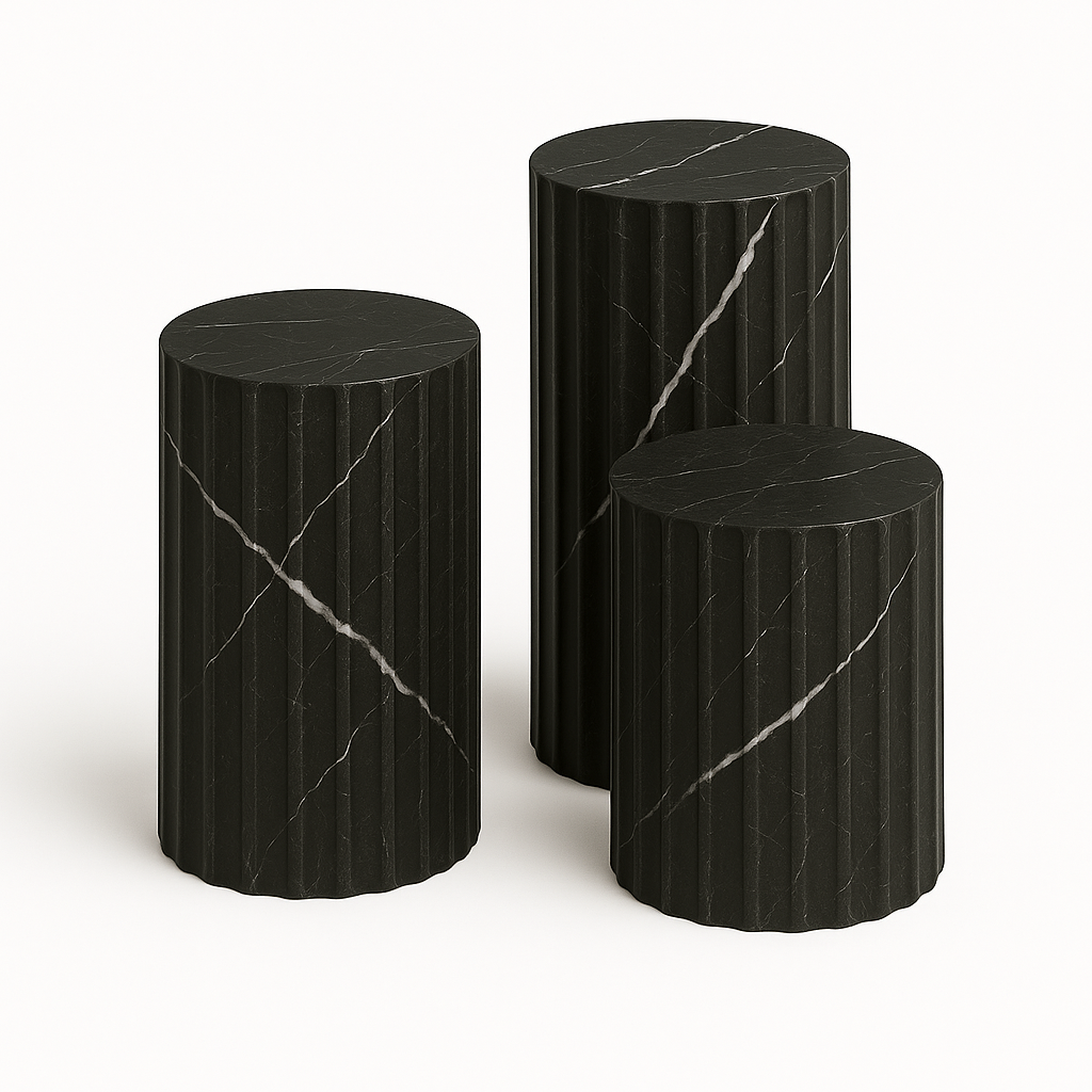 While stunning as a standalone side table or a pedestal for your favorite sculpture, Leona truly comes to life when grouped. Create a dynamic, multi-level coffee table arrangement by clustering different heights and even different finishes. The soul of your Leona is defined by the marble you select. A classic Carrara white offers serene sophistication, a warm travertine brings an earthy, organic feel, and a rich black marble introduces a note of powerful drama. Design your own composition and let the Leona tables become a versatile and timeless addition to your discerning interior.