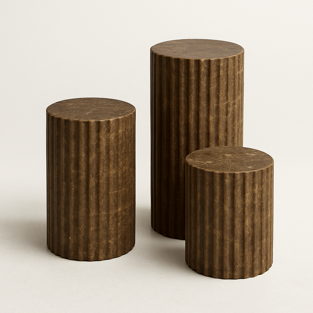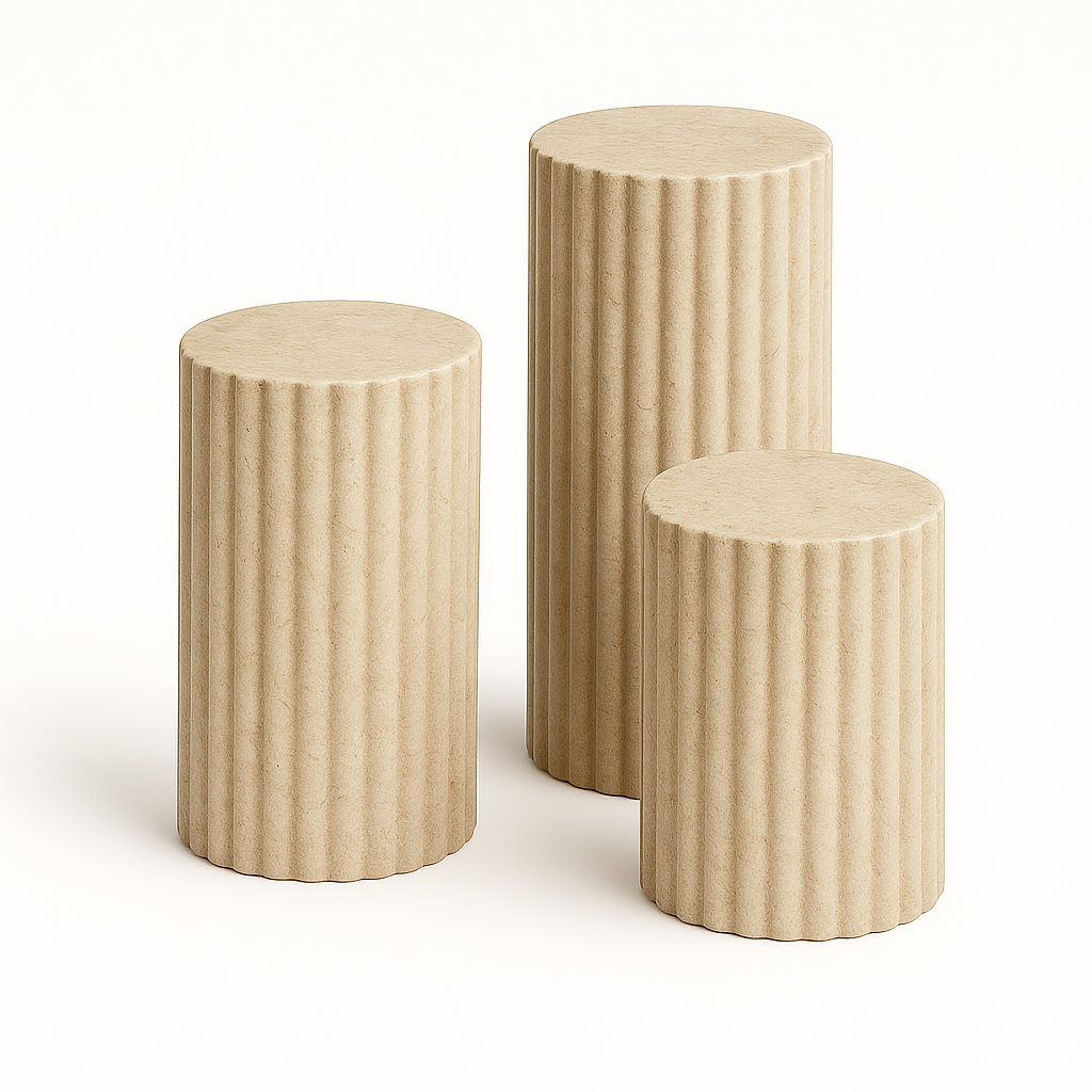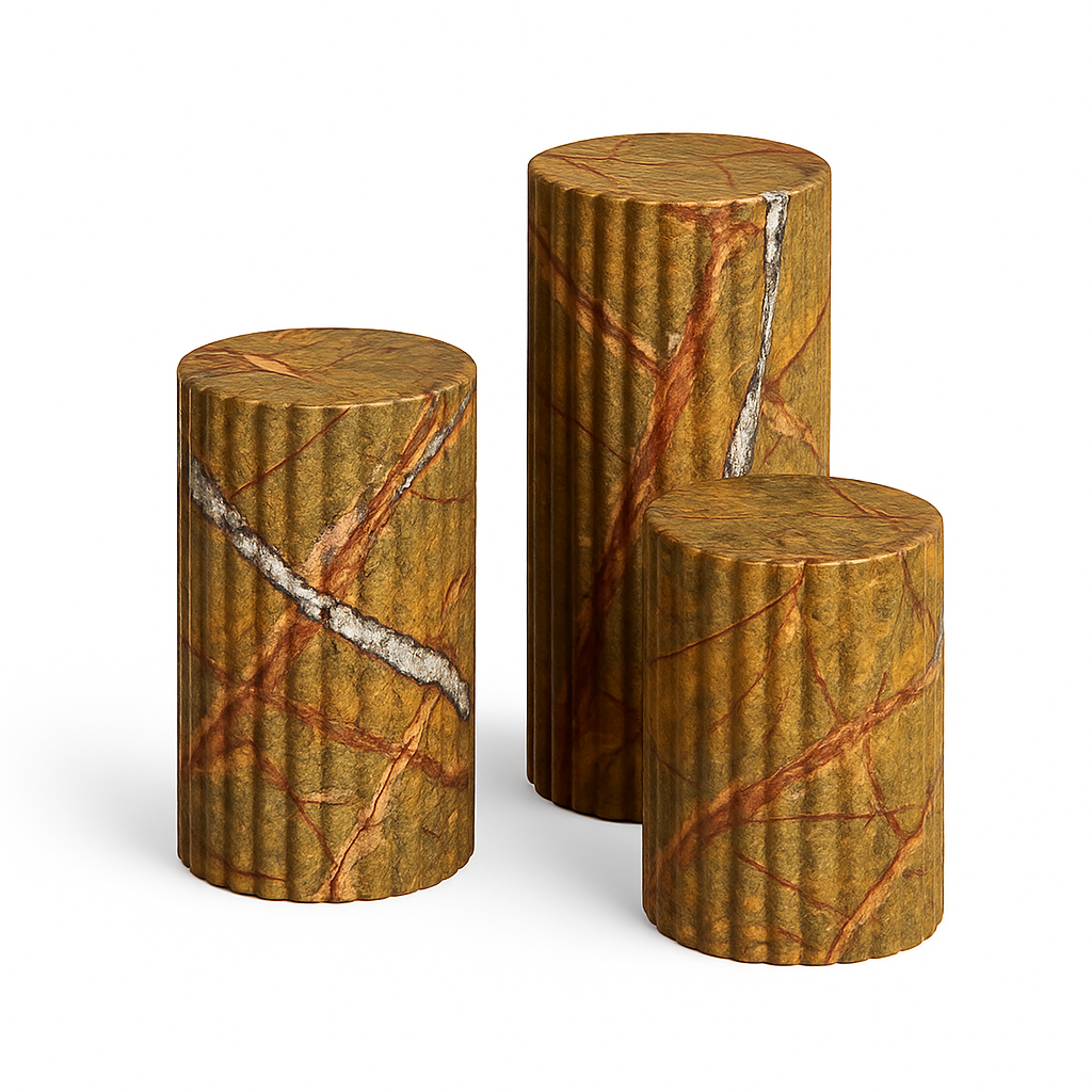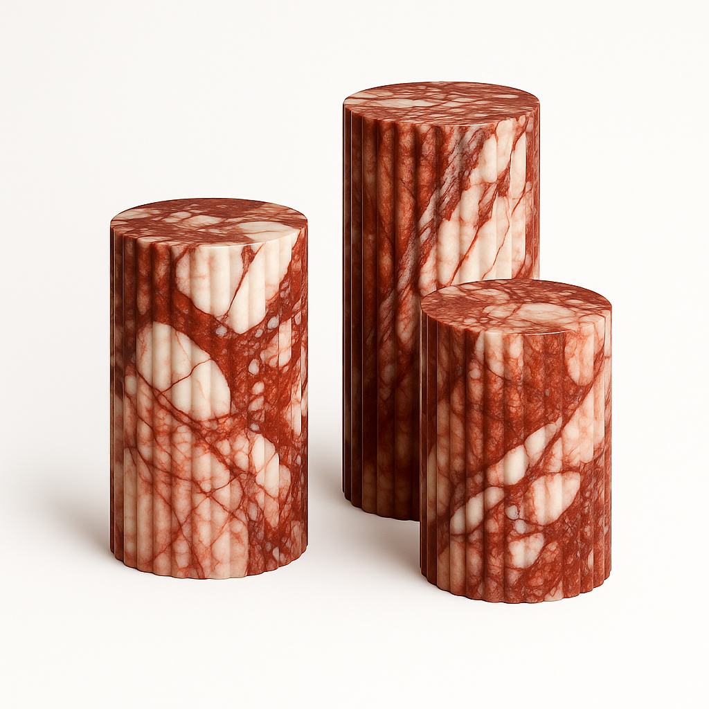 While stunning as a standalone side table or a pedestal for your favorite sculpture, Leona truly comes to life when grouped. Create a dynamic, multi-level coffee table arrangement by clustering different heights and even different finishes. The soul of your Leona is defined by the marble you select. A classic Carrara white offers serene sophistication, a warm travertine brings an earthy, organic feel, and a rich black marble introduces a note of powerful drama. Design your own composition and let the Leona tables become a versatile and timeless addition to your discerning interior.