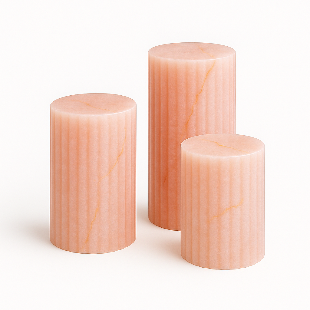 The Leona collection celebrates the power of simplicity. It’s perfect, uninterrupted cylindrical shape creates a sense of calm and stability, while the natural, flowing veins of the marble add organic energy and movement. The contrast between the hard, cool stone and the soft, curved silhouette makes Leona a uniquely captivating piece.