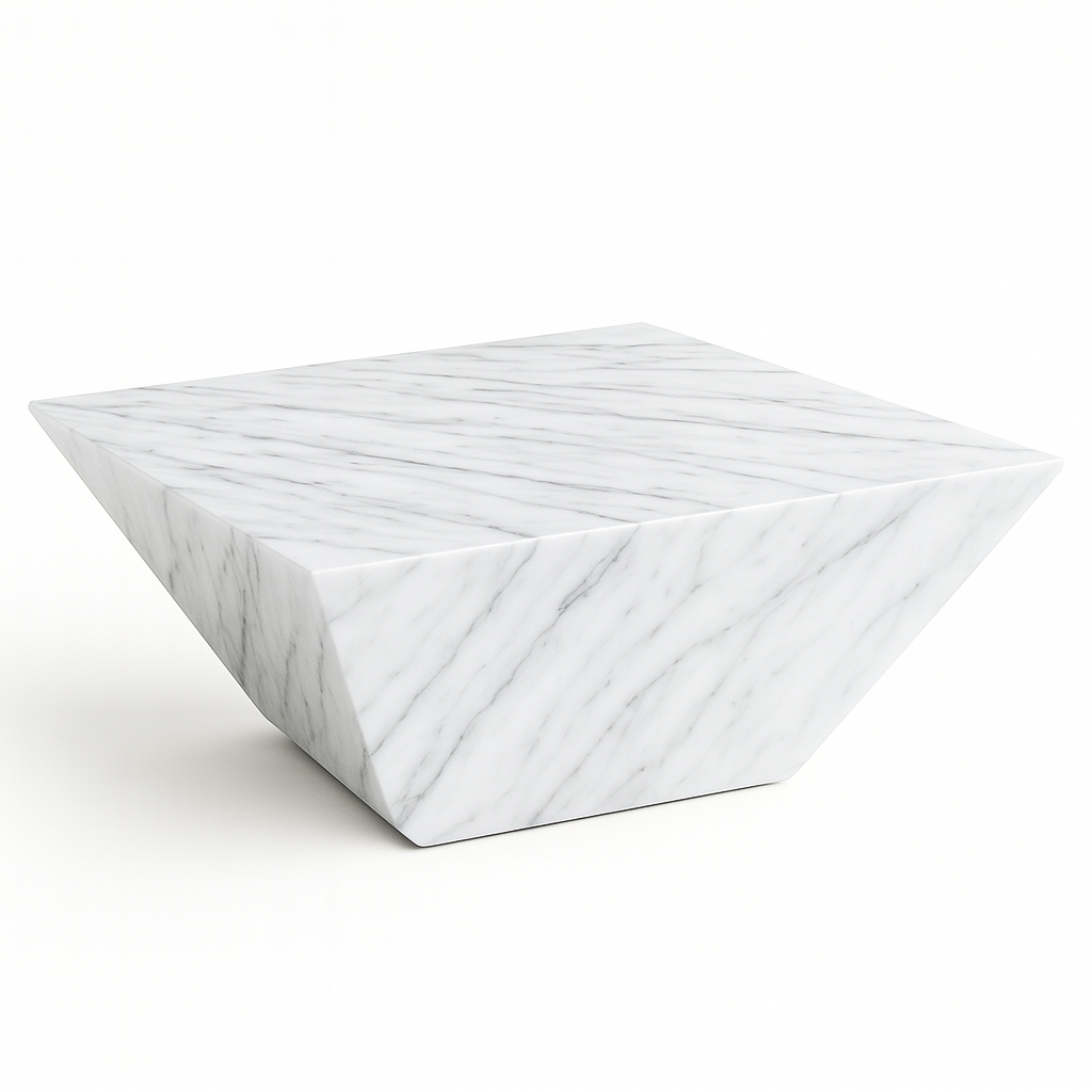 The expansive square top offers ample room for your morning coffee, favorite design books, or a curated display of cherished objects. Below, the body tapers inward, creating a dynamic interplay of light and shadow that changes throughout the day. The polished marble feels cool and substantial to the touch, a constant reminder of the natural, earthly material from which this heavenly form was sculpted.